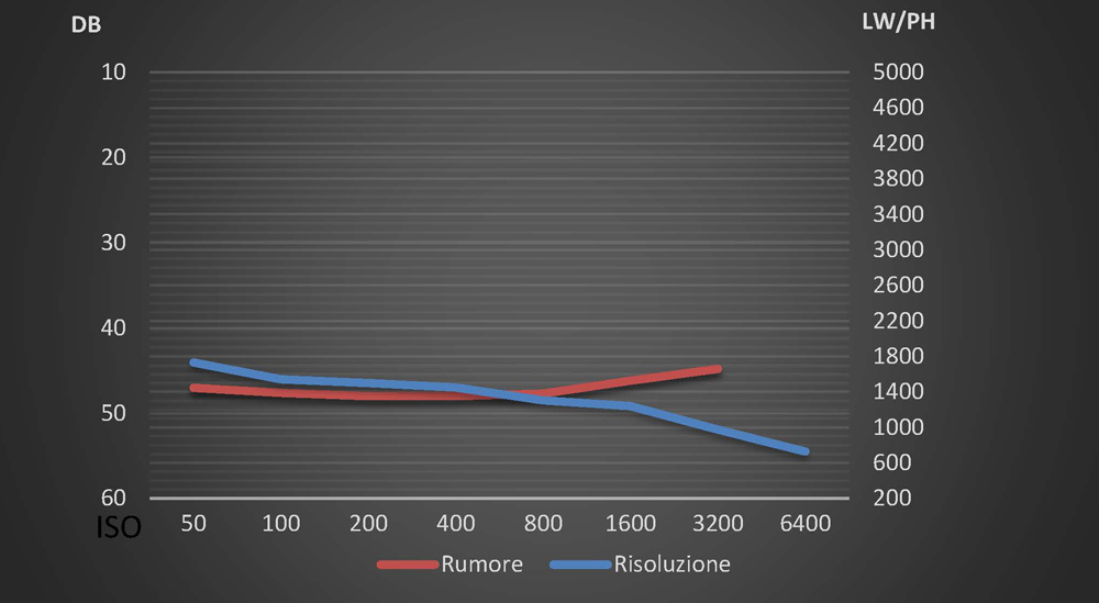 Miracolo che si ripete anche per la focale da 240mm con fattore zoom 10x. Anche qui il sensore è un classico RGB da 8 Mpxl ma, a medesimi valori di rumore, la risoluzione nominale è ancora più elevata rispetto all’ottica 3x.