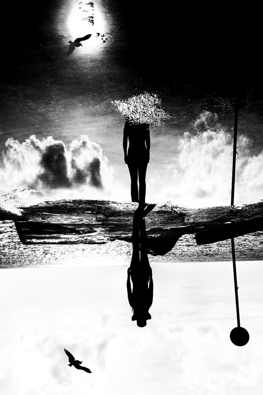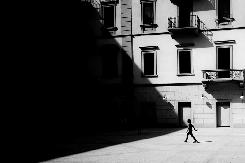 Rimane fedele al suo bianconero ad alto contrasto, quasi grafico, dove le figure umane diventano silhouette sospese in spazi metafisici.