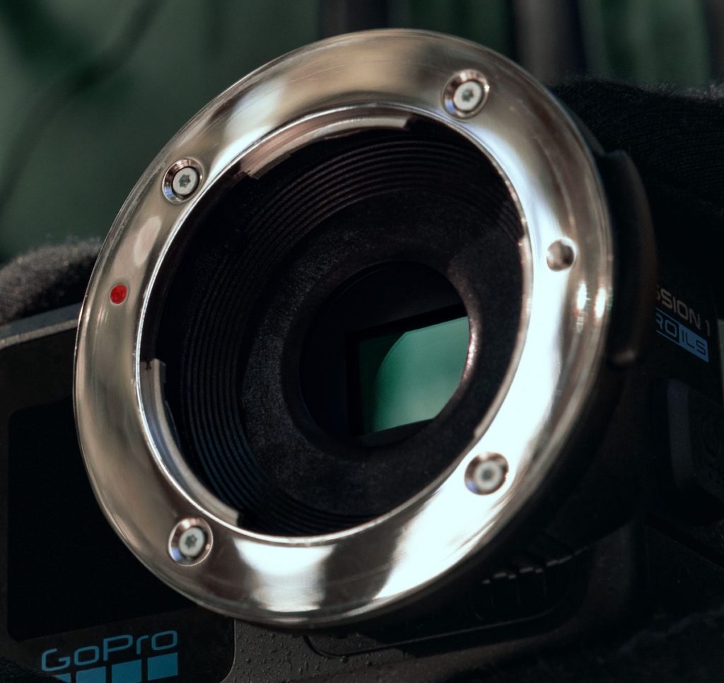 È la prima GoPro ad avere un’ottica intercambiabile e la baionetta permette di montare qualsiasi obiettivo Panasonic, Leica, Olympus/OM System.