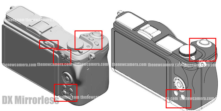 Nel disegno di thenewcamera.com si vede come la mirrorless di altro livello avrà più comandi di quella di fascia media.