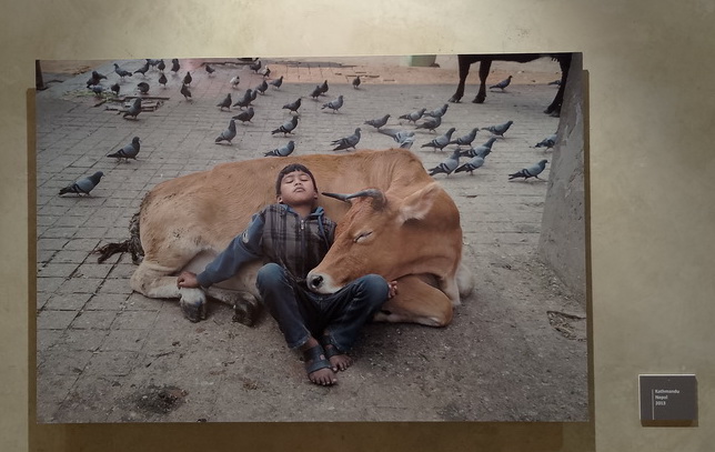 Di primo acchito lo spettatore viene colpito dalle immagini più iconiche che prendono lo stomaco, come quella del bambino peruviano che piange mentre si punta il revolver alla tempia. Oppure il famosissimo ritratto di ragazza afgana (forse la sua foto più conosciuta che a guardarla fa sempre venire la pelle d´oca). Ma, come per incanto, lungo il percorso espositivo, affiorano immagini ricche di afflato umano, opere che accarezzano l´anima e fanno venire voglia di andare alla più vicina agenzia viaggi per volare a esplorare il mondo. Tra queste spiccano certamente la fotografia della mucca di famiglia (in Nepal non le mangiano, le venerano) accovacciata di fianco il suo giovane padrone, mentre dormono beatamente, a fargli da placido cuscino. E i ritratti intimi di madre e figlio ripresi da un finestrino di un taxi.