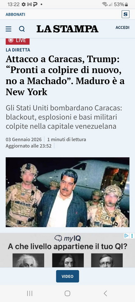 Il mondo si sveglia così con la notizia che Donald Trump ha attaccato il Venezuela e tutti i media e i social del mondo cominciano a diffondere video e foto della cattura.
